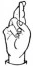 На ћирилици написано ЈАГОДА ХАРАЧИ састоји се из 12 слова [?]. Исписано ћириличном једноручном азбуком за глувонеме:
